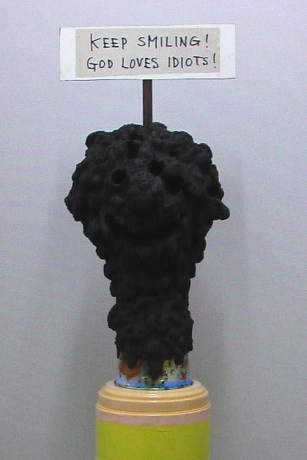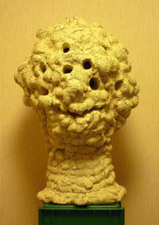 園芸用の土、建築用のシリコン、工業用グリース、ウレタン、バケツ、プラスチックボトル、ボール、酒瓶、雑誌、など、身の回りにある日用品を素材にして彫刻を作っています。